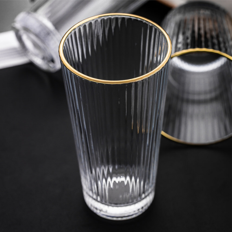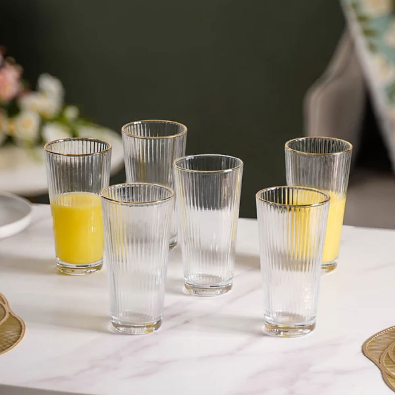 Ribbed Gold Rim DELI Tall Tumbler Set Of 6 350 ml