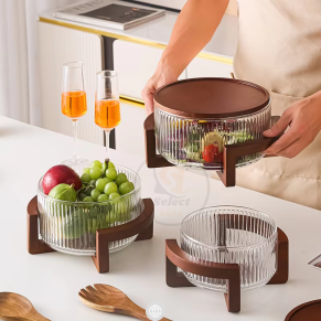 Glass Fruit/Salad Bowl 2800ML With lid and available in Gold/Clear